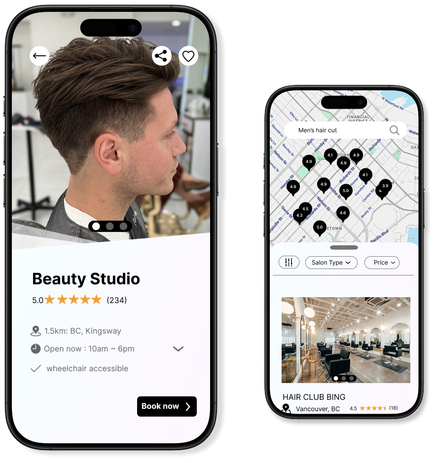 Find top-rated beauty salons near you in just a few taps.